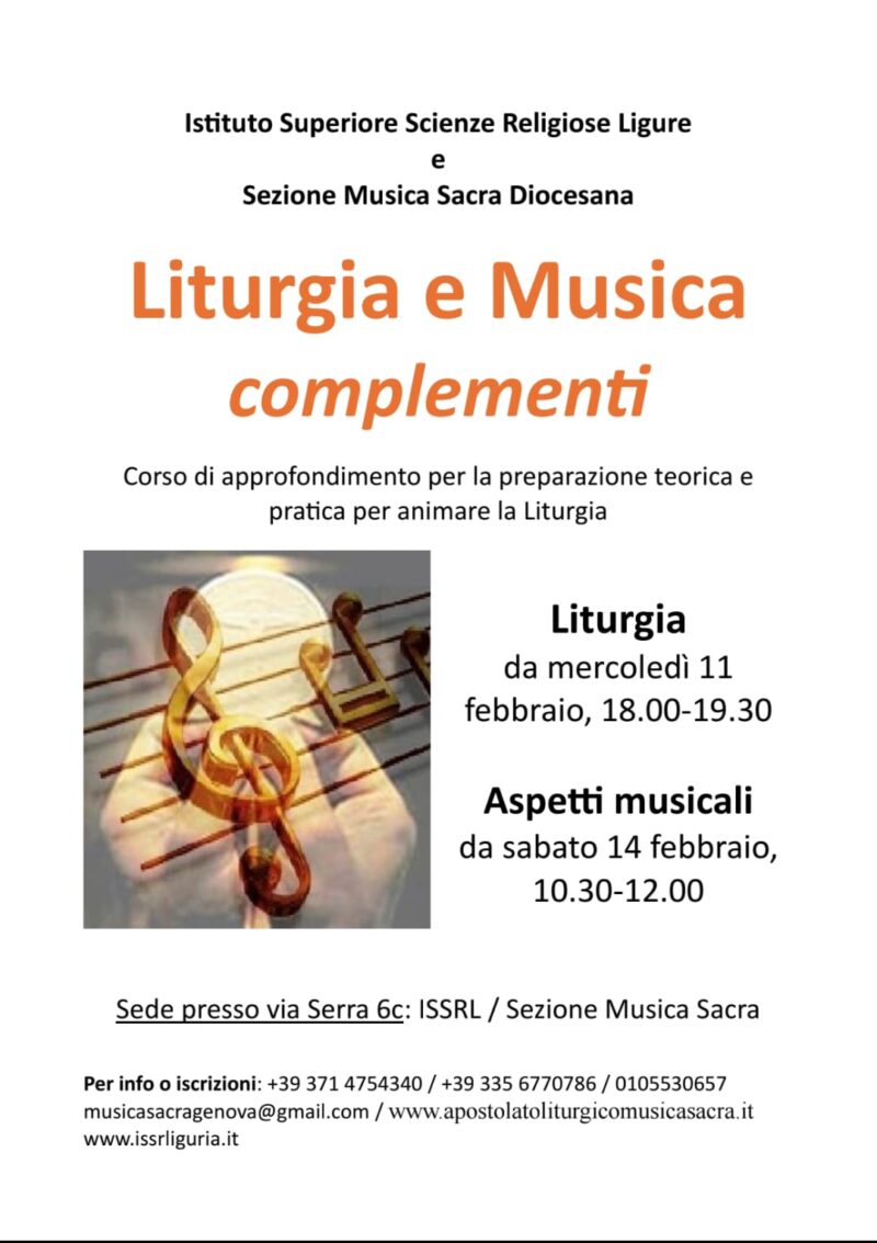 (modulo scaricabile sul sito: www.apostolatoliturgicomusicasacra.it). Per gli Iscritti ISSRL – mail di adesione in Segreteria Genova