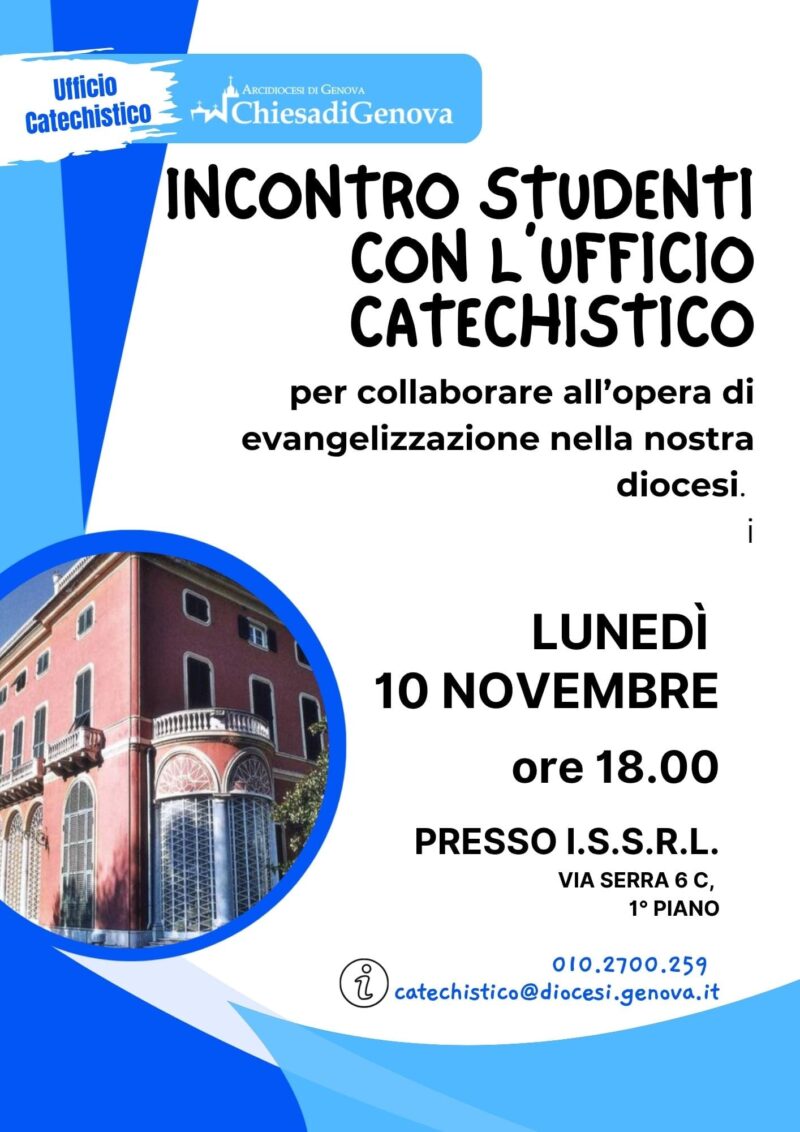 L’Ufficio Catechistico di Genova invita Studenti ISSRL e utenti all’incontro con il Direttore dell’Ufficio Catechistico, Don Matteo Firpo per collaborare all’opera di evangelizzazione nella nostra diocesi.